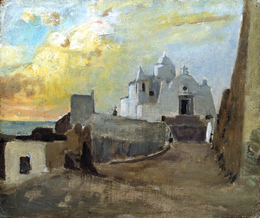 Carissimo Sessi, venerdì mattina sono partito per Ischia… E’ impossibile descrivere le meraviglie di questa, e quella descrizione che ne fece Pointeau non è che un debole riflesso del vero. Tutto è incanto, ma soprattutto belle sono le donne di questa isola: ieri abbiamo fatto una “ciucciata” (passeggiata su asini) e siamo andati a Forio, distante tre o quattro miglia da Casamicciola… E’ impossibile che ti faccia la descrizione di ciò che ho veduto… Pointeau ha fatto due studi disegnati molto belli e due ne ha incominciati dipinti…