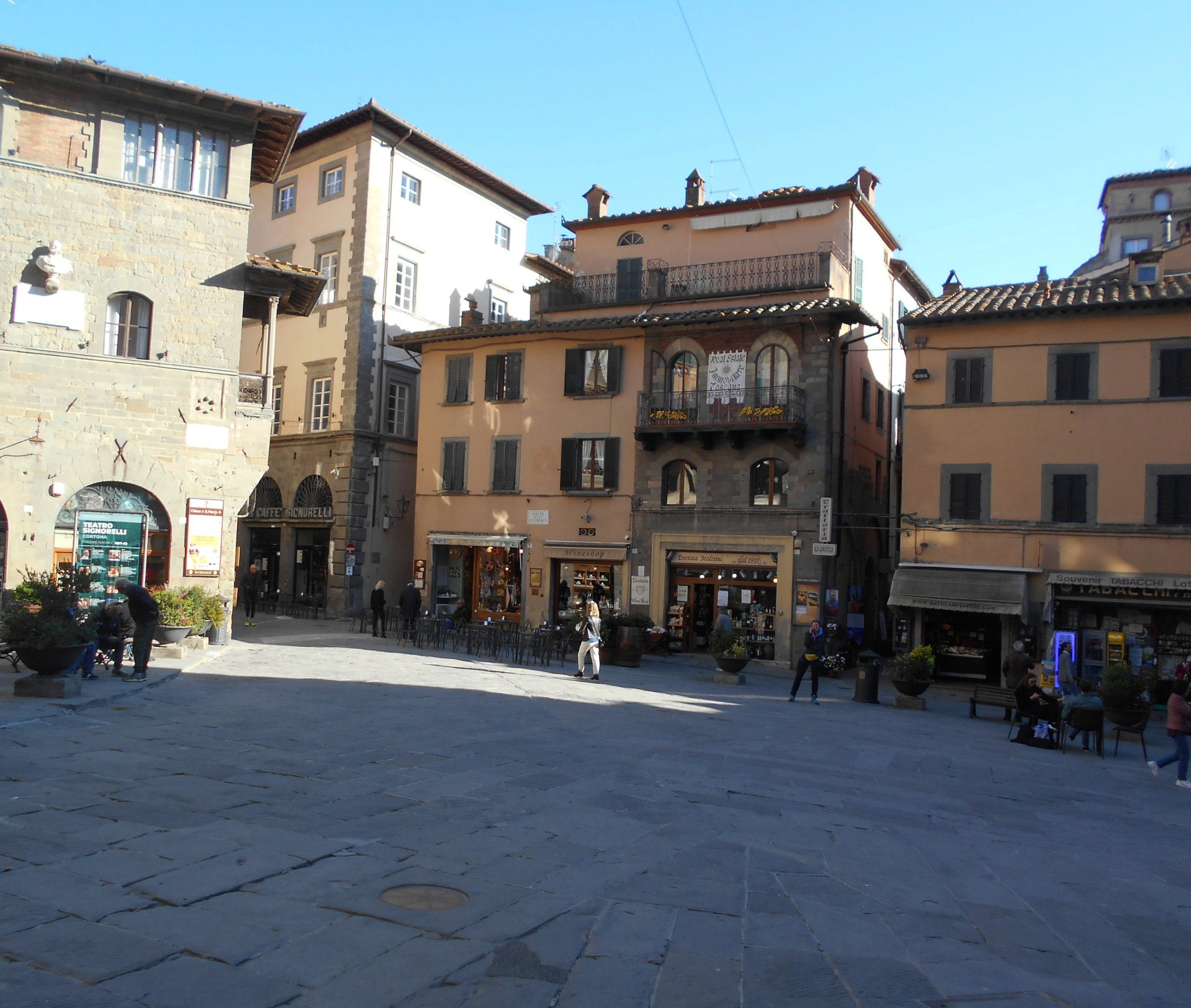 Cuore di Cortona è la bella Piazza della Repubblica, che con Piazza Signorelli costituiva il punto in cui cardo e decumano si univano nel foro di epoca etrusco-romana.